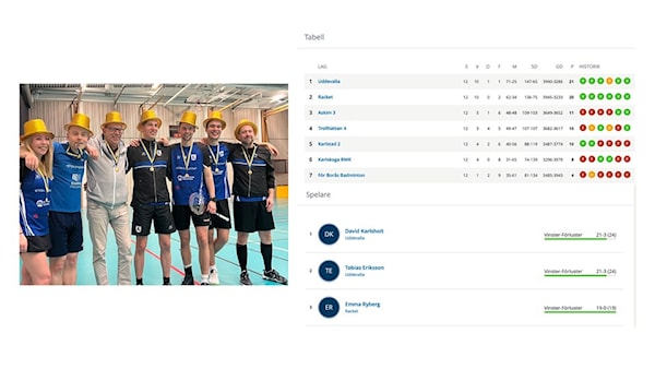 Det blev tight in i det sista och där vi på hemmaplan kunde konstatera att vi vann serien, endast en poäng före duktiga BKM Racket från Alingsås. Laget har presterat på topp och gjort en fin säsong med många bra individuella prestationer, laget vann 10 matcher , spelade oavgjort 1 och förlorat 1.